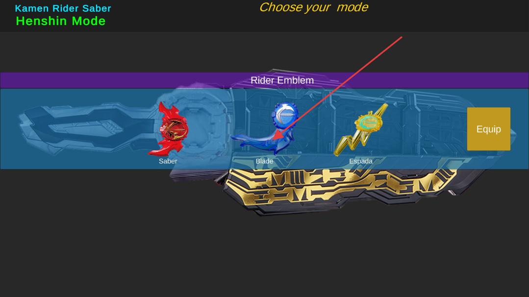 1、道具选择:在“Choose your mode”界面,选“Rider Emblem”(如Saber、Blade),点击“Equip”装备对应徽章。
