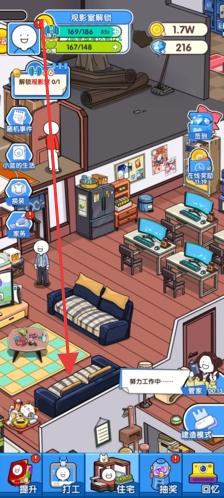 1、打工赚钱:点击“打工”按钮,选择工作(如“努力工作中”),完成工作任务,获取工资,中收益数值。