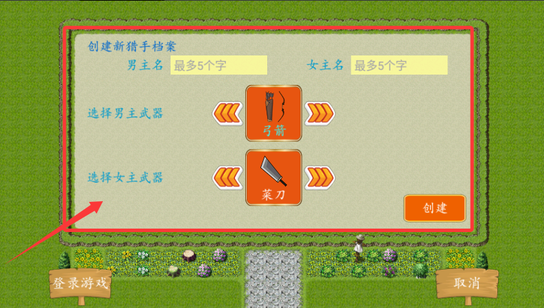 3、建立专属猎人角色档案,自定义名字和武器后即可开启丛林冒险。
