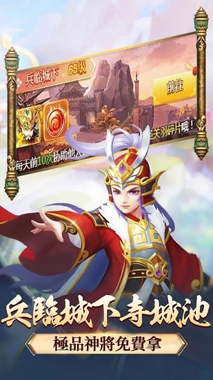 1、武将招募阵容构建:通过招募系统获取三国名将,根据武将职业(输出、坦克、辅助)与技能特性,搭配形成羁绊组合,构建优势战斗阵容。