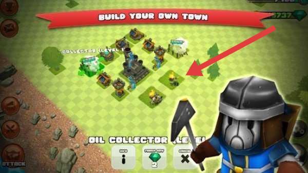 2、在城镇建设界面,按箭头指引,点击空地,建造新建筑(如资源收集设施),发展“BUILD-YOUR-OWN-TOWN”。