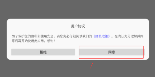 1、首次启动需阅读并确认用户协议,点击同意按钮进入主界面。