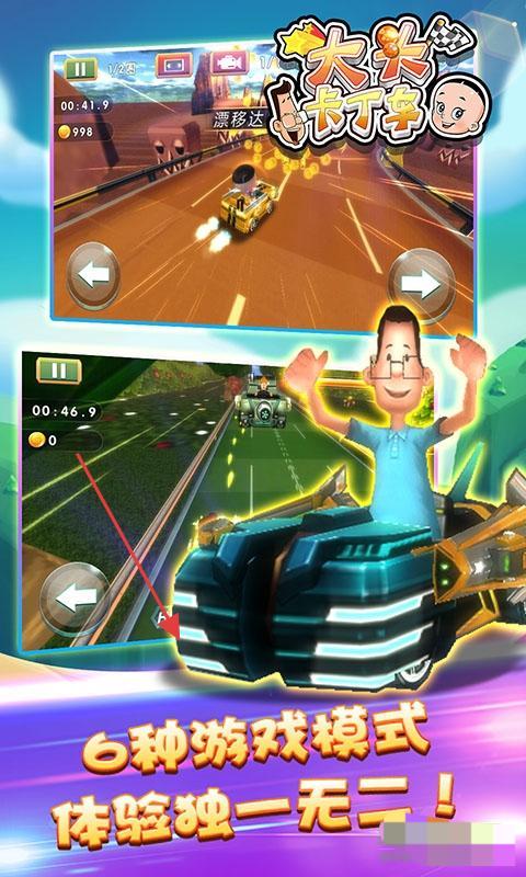 - 大头卡丁车是一款改编自火爆动漫大头儿子与小头爸爸的赛车竞速类作品,玩家创建角色即可开启,开始有教程带领了解操作场景地图和常用功能,完成后便能进行