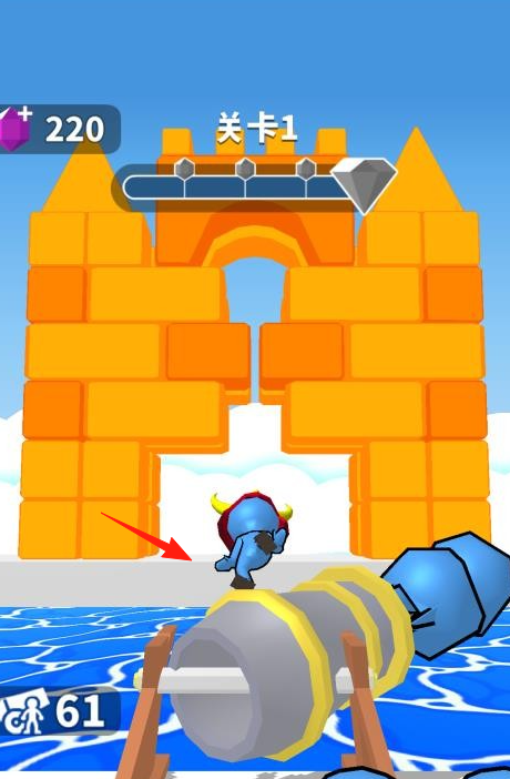 1、在关卡1中,操控【蓝色小人】躲避前方【攻城锤】,顺利通过城堡缺口进入下一关句号。
