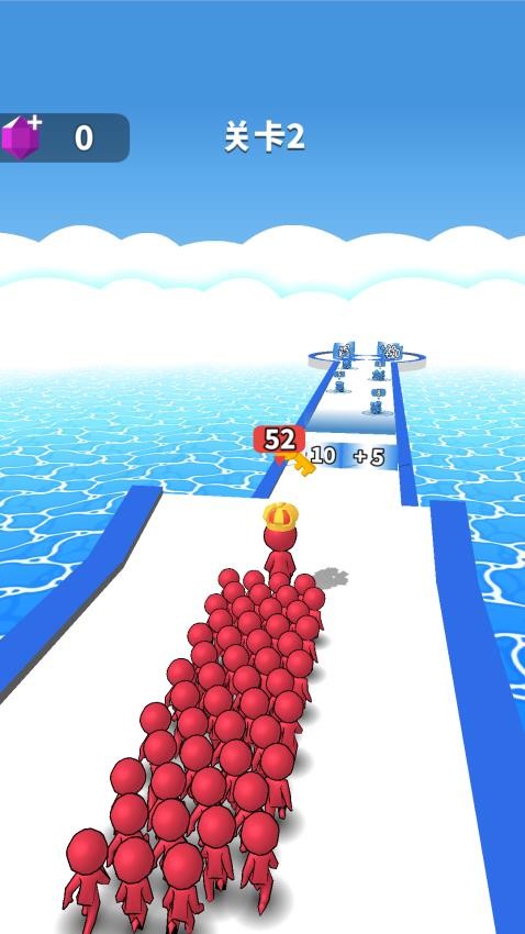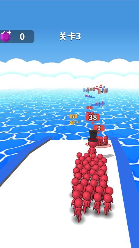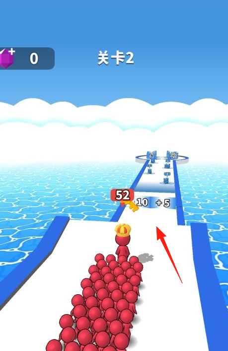 3、继续关卡2进程,让红色小人队伍沿道路前进,收集路上【数值道具】,增强队伍实力,以应对后续挑战句号。