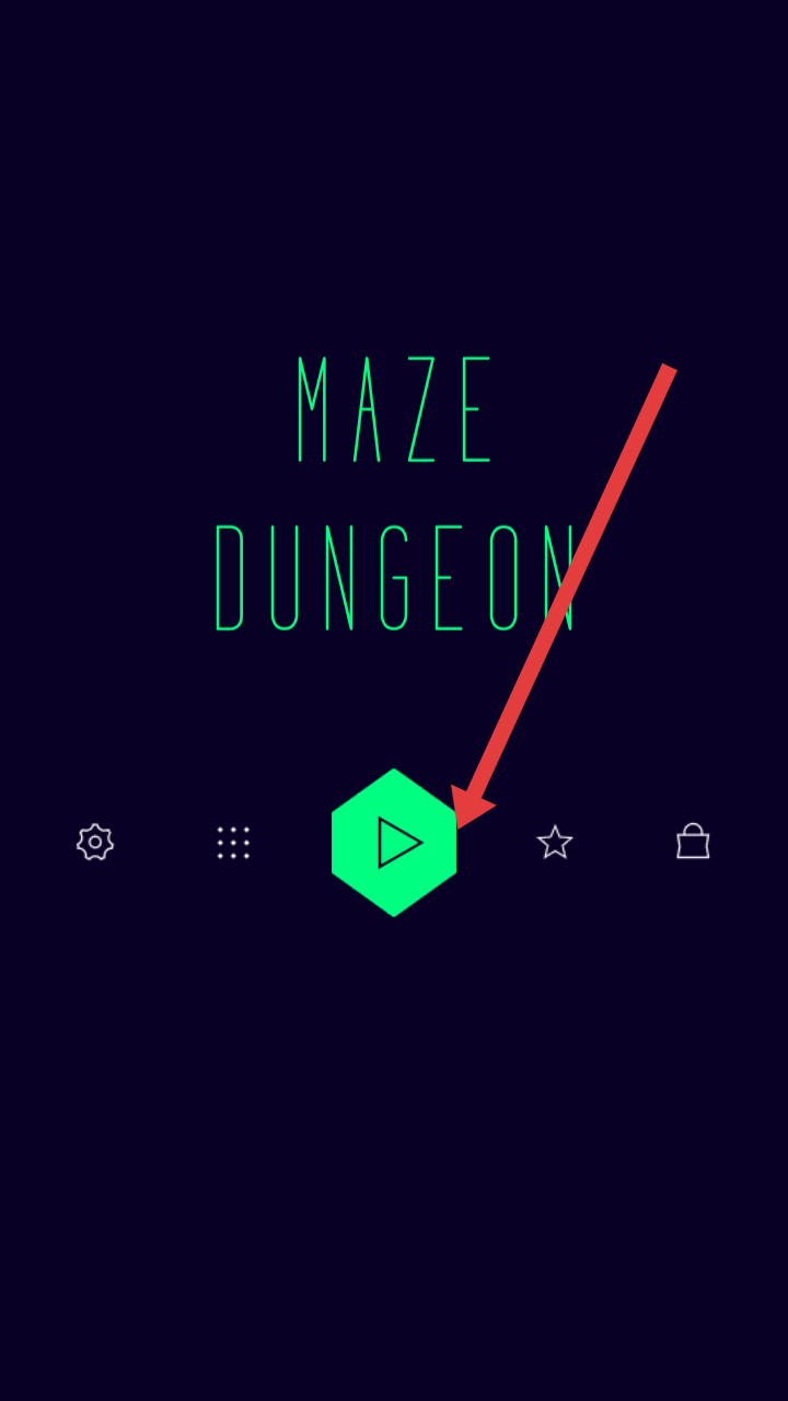 1、在Maze Dungeon的游戏主界面,操控者需要点击中间绿色六边形播放按钮,开启你的迷宫冒险之旅。
