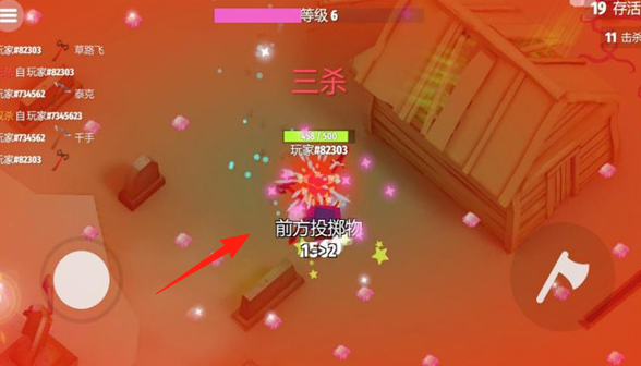 2、战斗中,留意【前方投掷物】提示,提前躲避,同时抓住时机,完成三杀等连杀操作。