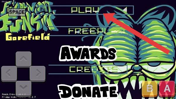 1、图中出现了加菲猫的角色形象,界面有【PLAY】(开始游戏)、“FREEPLAY”、“AWARDS”、“CREDITS”(credits,一般指制作人员表)、“DONATE”(捐赠)等选项。