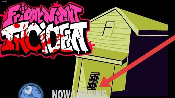 2、游戏名为《FridayNightIncident》,画面显示正在加载(NOWLOADING),有房屋的图案。