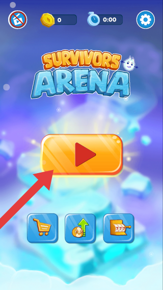 1、画面中有开始游戏的播放按钮,以及金币、时间等显示,下方还有商店、升级、任务等功能按钮。