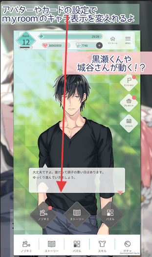 3、角色养成:在“myroom”配置角色(黑瀬くんや、城谷さん),更换外观、提升等级,触发专属互动(语音、故事)。