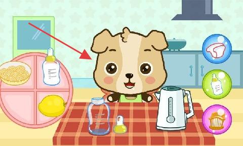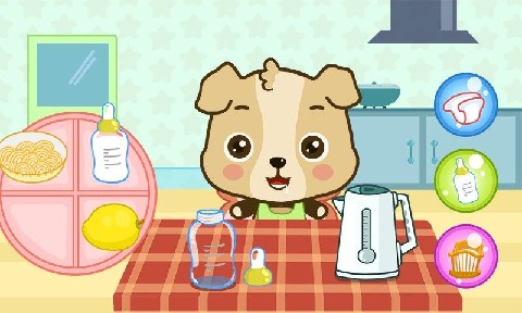 1、从初始界面选开始,进入不同场景,通过操作图标,完成照顾角色任务。