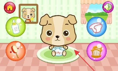 3、切换到房间场景,点击护理图标,给角色换尿布、陪玩,照顾其生活。