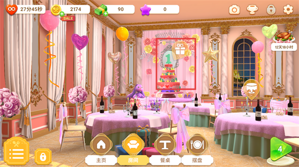 2、点击房间即可对当前房间进行各种装扮,包括蛋糕以及各种设施的摆放与选择,逐步提升餐厅口碑与Charlotte的厨艺等级。