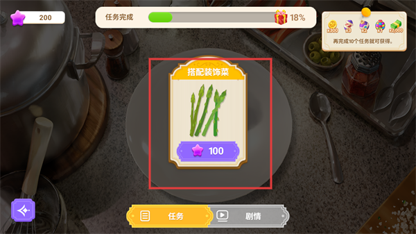 3、而在摆盘页面则可以使用星星对菜品的摆盘进行各种修改,每完成一次摆盘任务都可以获得不同的奖励。