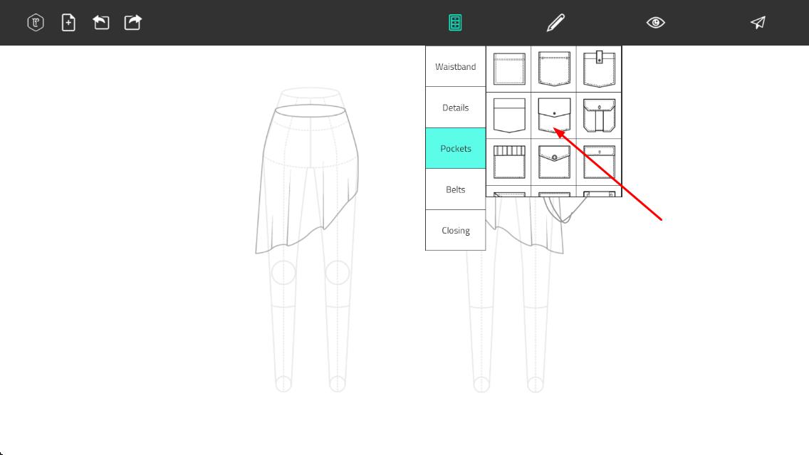 1、进入游戏后在材料库选择棉布、丝绸等布料材质,搭配纽扣、拉链等辅料,拖拽至设计台开始服装基础版型制作。