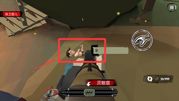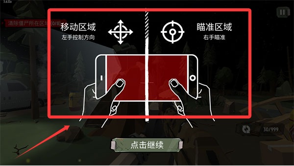 1、首先进入游戏后,我们先熟悉一下操作,左边控制方向,右边控制瞄准,以及攻击、换弹键。