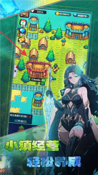 2、小镇经营:建设升级建筑,积累资源,解锁功能、招募角色,强化战力。