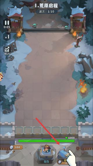 1、开局进入:点“进入游戏”,选“荒原启程”等关卡,开启波次防御。