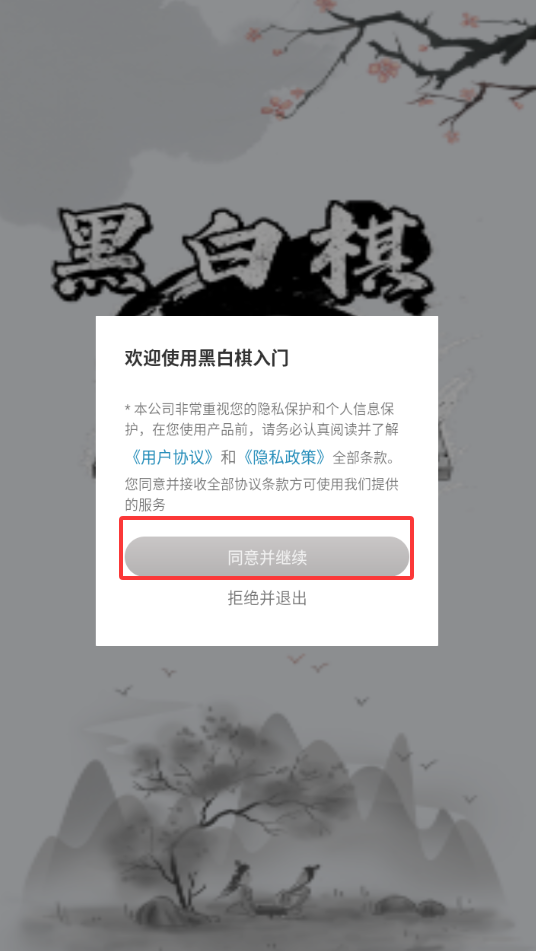 1、点击同意并继续进入游戏。