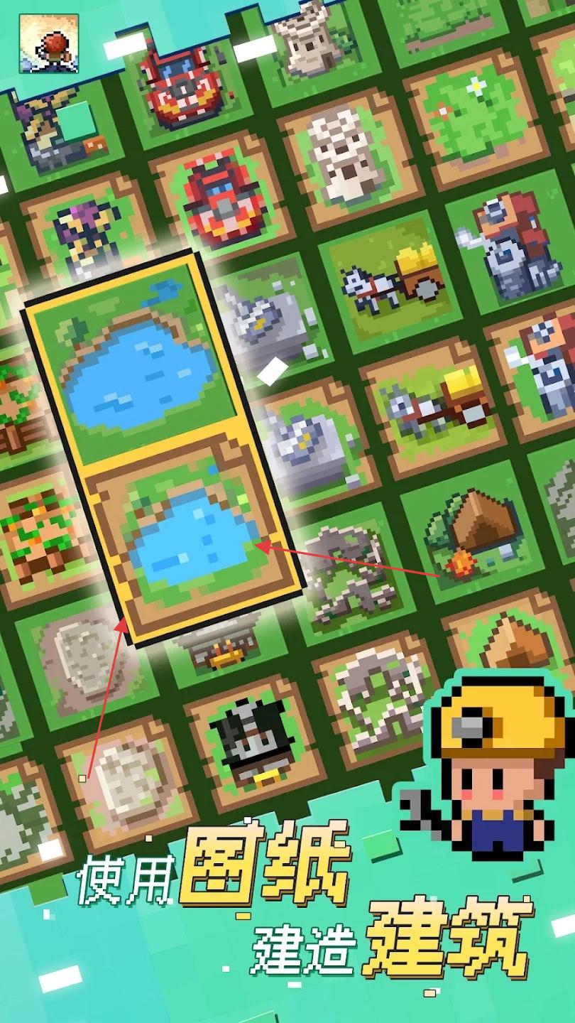 1、收集图纸,消耗资源,点击建造建筑,扩展领地,解锁新功能、场景。