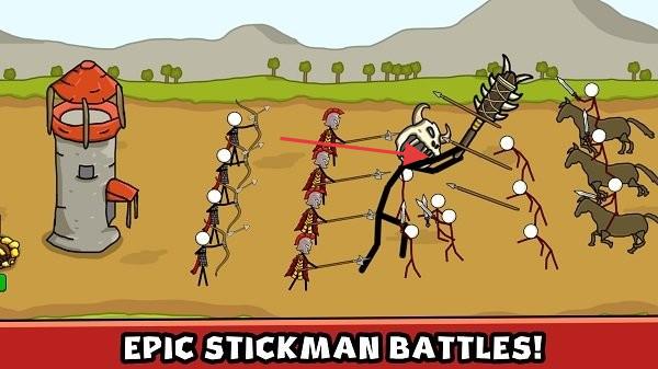 2、丰富兵种策略深度:包含多种特色火柴人兵种,剑士、弓箭手、法师等各有优势,玩家需根据敌方阵容合理搭配兵种,深度策略带来多样挑战。