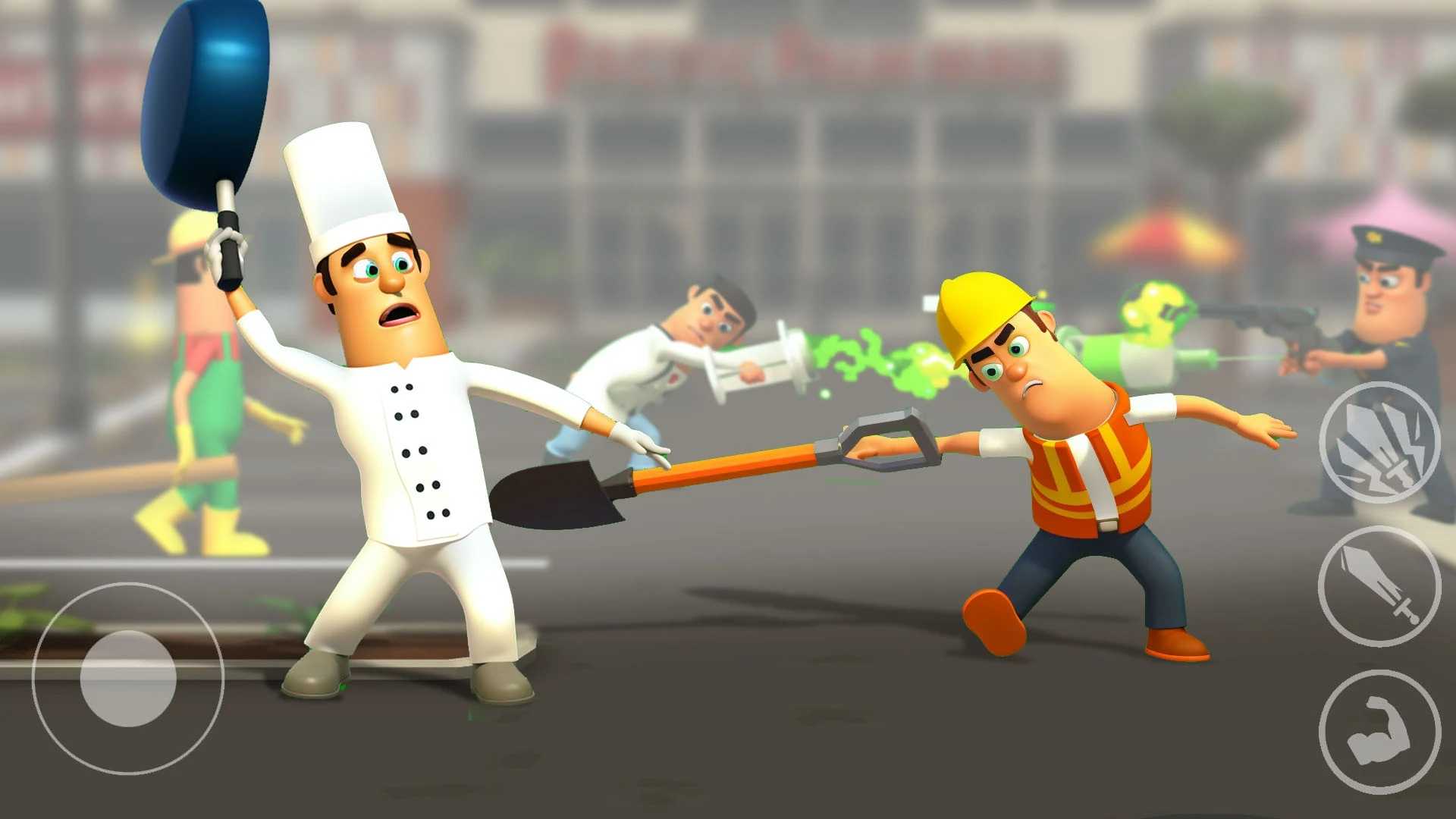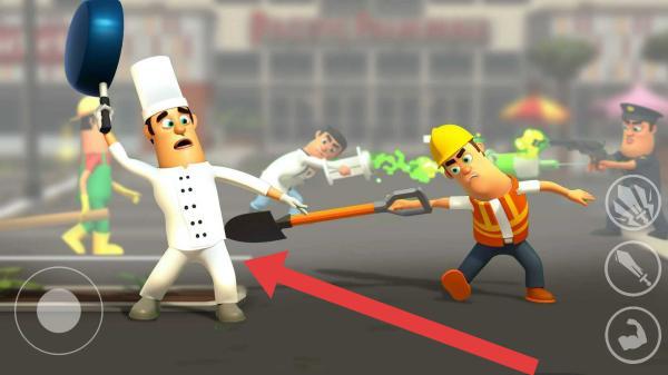 2、是一款休闲动作类,玩家在游戏中操控角色抓捕僵尸,图中展示了角色间的互动和攻击场景。