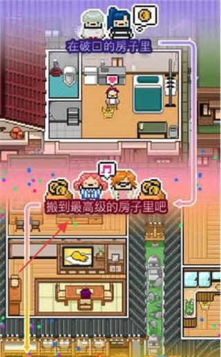 3、生活迭代:从破旧房起步,攒钱搬家到高级住所,解锁新场景、剧情,撑到毕业。
