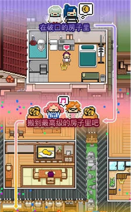 3、资产积累与生活升级:用打工收入购买家具(从折叠椅到真皮沙发)、升级房产(从合租单间到独立公寓),房产等级提升会解锁新工作渠道。