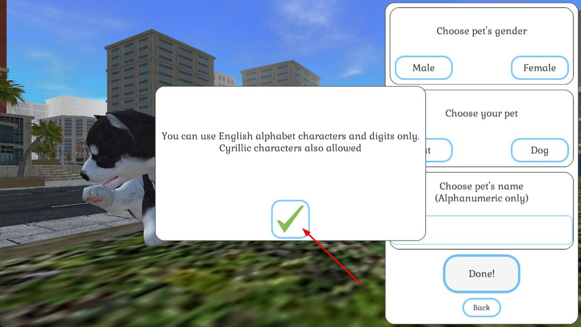 1、进入游戏先从猫狗幼崽中选择心仪宠物,通过滑块调节毛色花纹、耳朵形状等外观细节,生成专属萌宠形象。