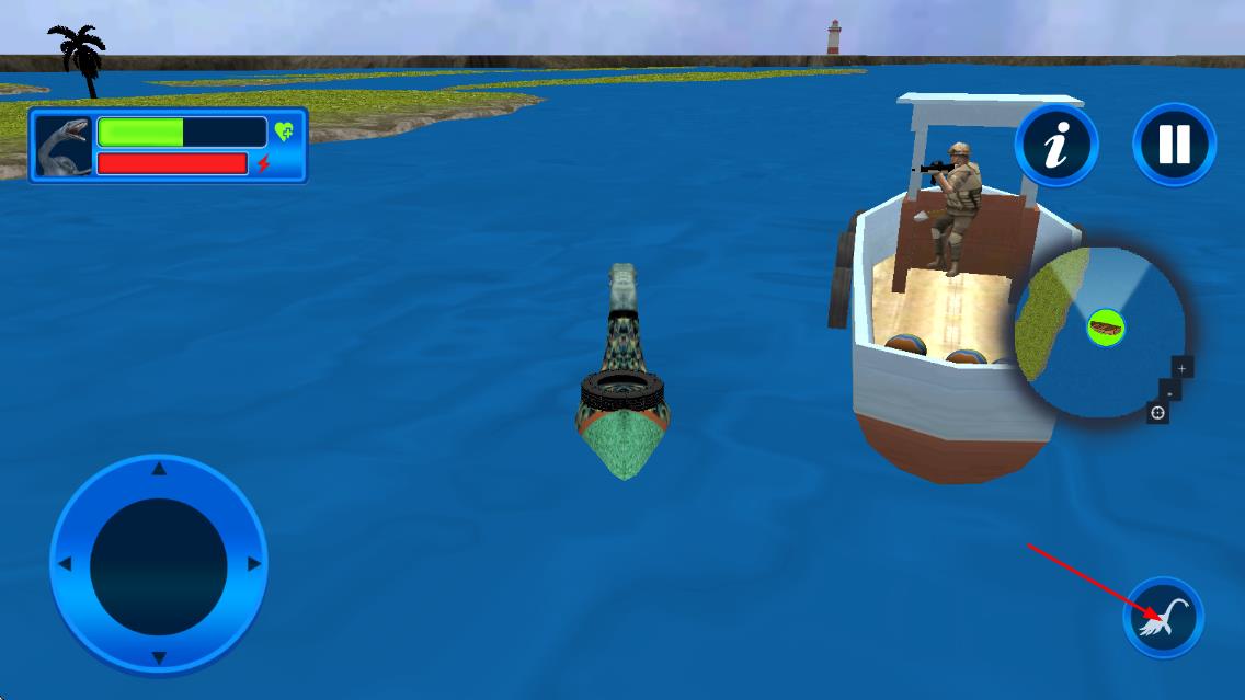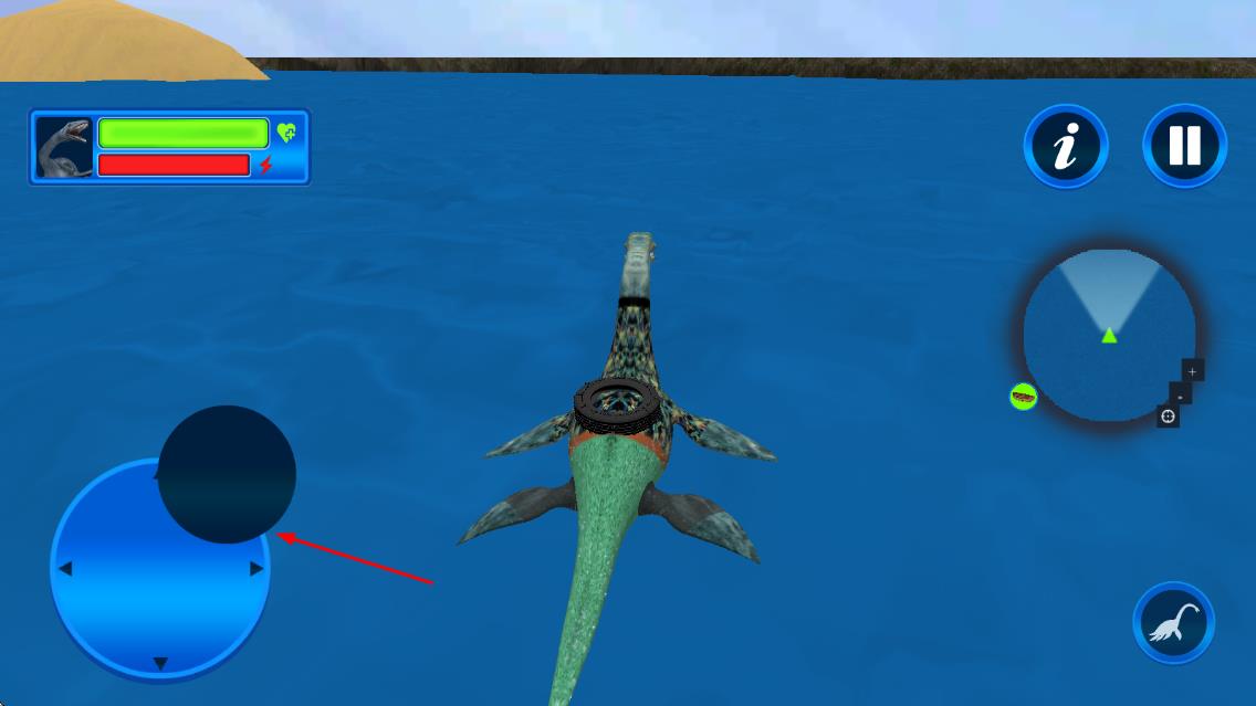 1、进入游戏后操控尼斯湖水怪在湖域中探索,利用声波感知周围生物位置,锁定鱼类等小型生物进行初次捕猎。