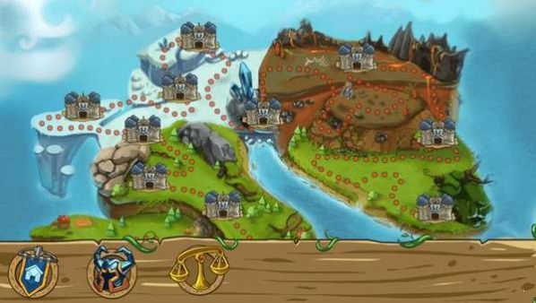 1、卡通画风趣味场景:采用可爱卡通画风打造游戏世界,城堡、士兵、敌人等形象生动有趣,搭配色彩缤纷的场景,带来轻松愉悦的视觉体验。