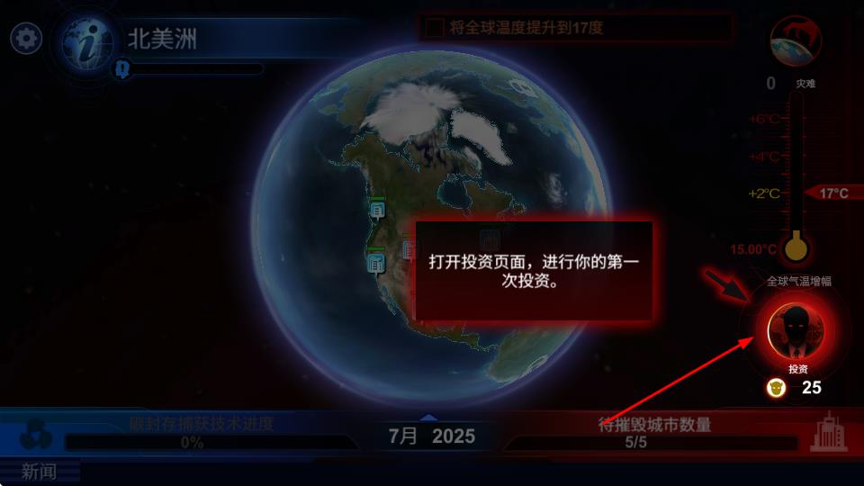 3、在对局关卡,点击碳排放设施调整数值,朝着达成目标温度的方向努力,同时留意环境指数变化,合理规划每一步策略操作。