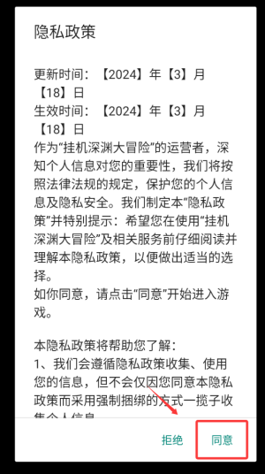 1、勾选用户协议后自动跳转至游戏主界面。