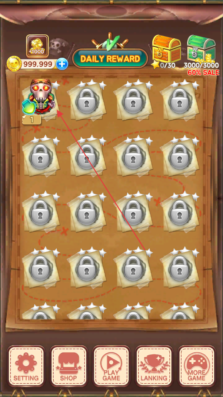1、进入游戏关卡,操控角色,在限定步数(20MOVES)内消除元素,挑战骷髅海盗。