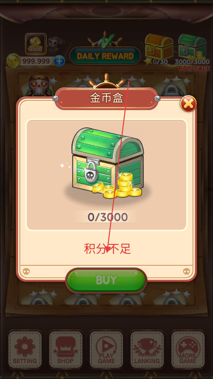 3、遇到金币盒,积累积分达3000可开启,积分不足则无法购买,需继续游戏攒积分。
