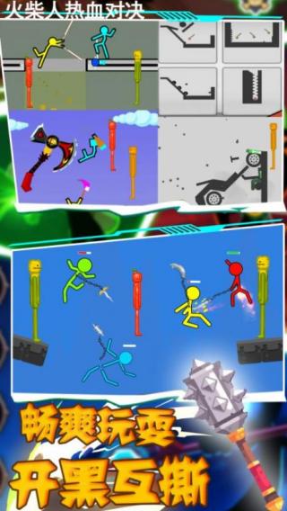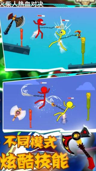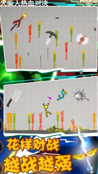 - 火柴人热血对决是一款深受各年龄段玩家喜爱的动作格斗佳作,玩家一进入场景就能即刻感受到它的独特妙处,场景以火柴人为主角展开激烈战斗,凭借简洁却充满