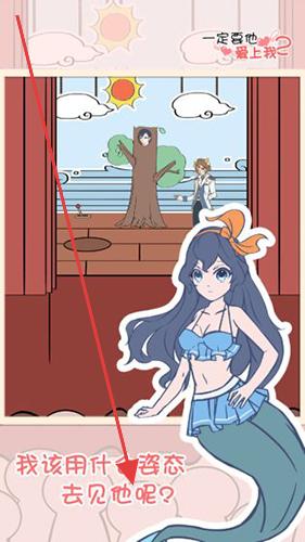 1、在场景中,观察环境元素(如树木、人物位置),点击互动道具,尝试组合或触发,帮美人鱼选合适姿态见心仪对象。