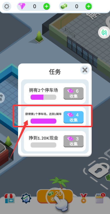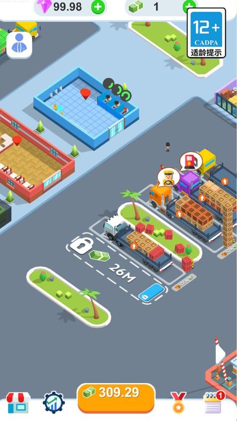 1、游戏启动后,系统会赠送启动资金,用于解锁基础停车区域和首批运输车辆,开启你的经营之旅。