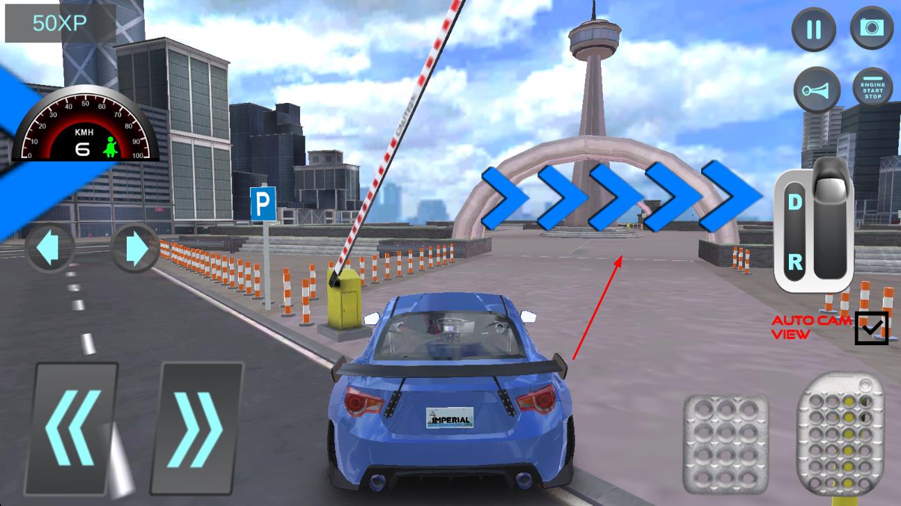 2、切换至科目二练习场景,选定心仪车型,驾驶汽车驶入考场,按照标线与提示,依次完成倒车入库、坡道定点停车与起步等项目操作,注意控制车速与车身角度。