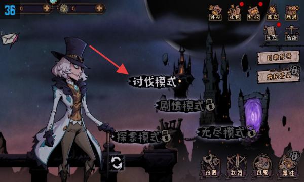 2、模式选择:在主界面选择“讨伐模式”等,还有剧情模式、探索模式、无尽模式,每种模式玩法和挑战不同。