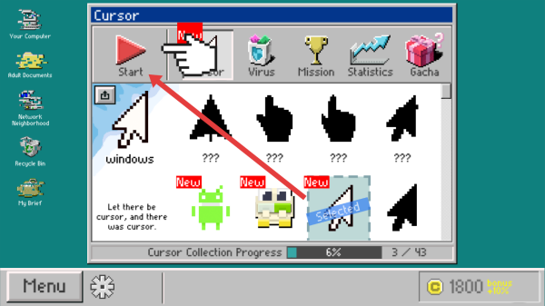 2、进入主界面,点击【Start】,选择光标(如windows),参与“Virus”射击任务,推进游戏进程。