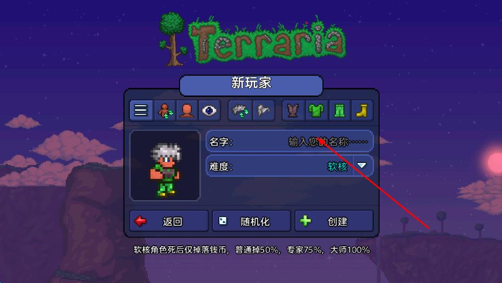 1、创建角色后进入随机生成的像素世界,先收集木材、石头等基础资源,制作工具与武器,搭建初始庇护所抵御夜晚怪物。
