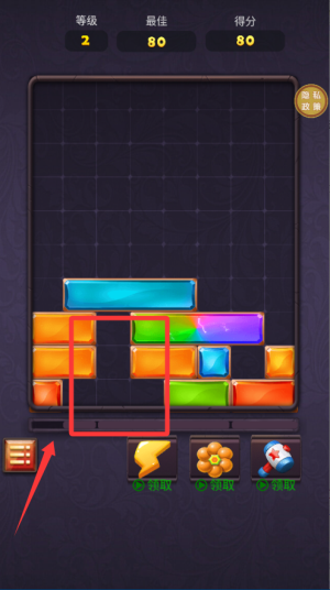 1、通过触控调整方块位置与角度,将其拼接成完整横线。每消除一行会腾出更多空间,为后续方块留出操作余地。