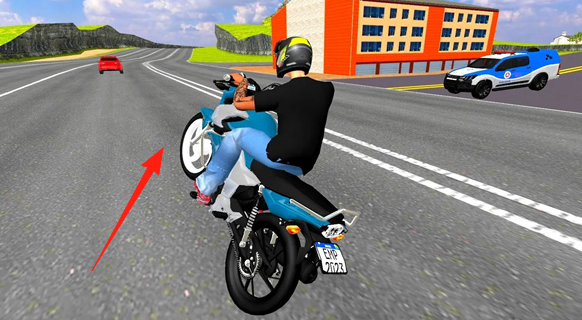 1、在公路行驶时,操控摩托做特技,沿【箭头】方向,保持平衡,避开其他车辆。