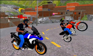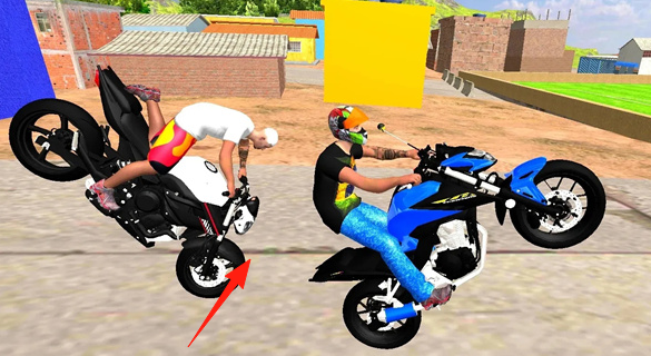 2、街头场景中,驾驶摩托,按【箭头】指引,与对手互动,展示特技,争取领先。