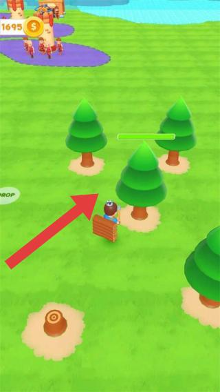3、左上角显示拥有1695美元,画面中有角色、树木,红色箭头指向角色移动方向,应该是操控角色移动的场景。