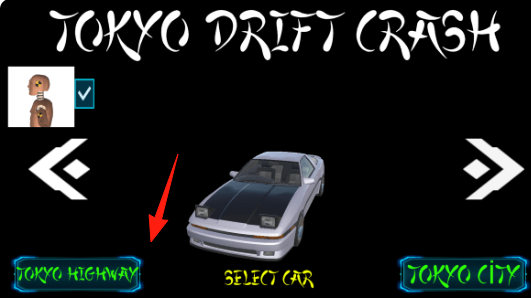 1、在选场景界面,点击【箭头】指向的“TOKYOHIGHWAY”,选定该赛道开始游戏。