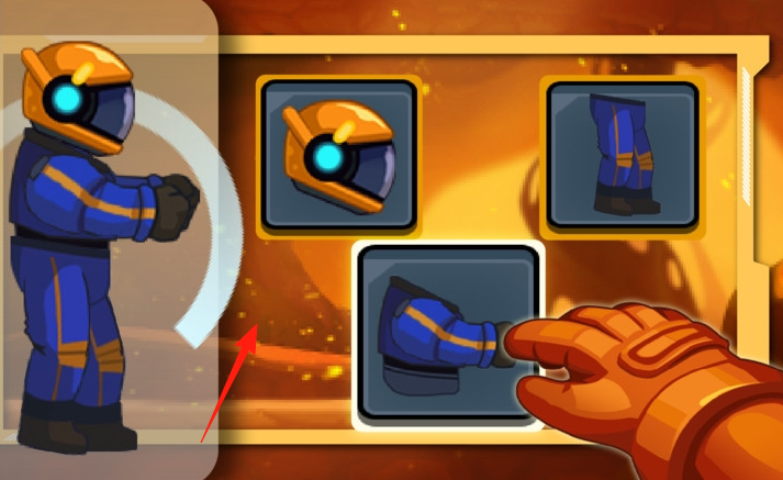 1、在角色装扮界面,点击【箭头】指向的装备部件,为角色穿戴,提升外观与属性。