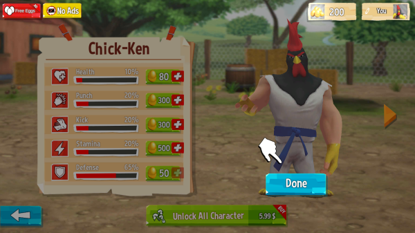 1、萌系角色设定:主角是一群造型可爱的小鸡,每个小鸡都有独特的外形与性格,搭配灵动的动作设计,让格斗过程充满趣味,即便激烈对战也不失萌态。